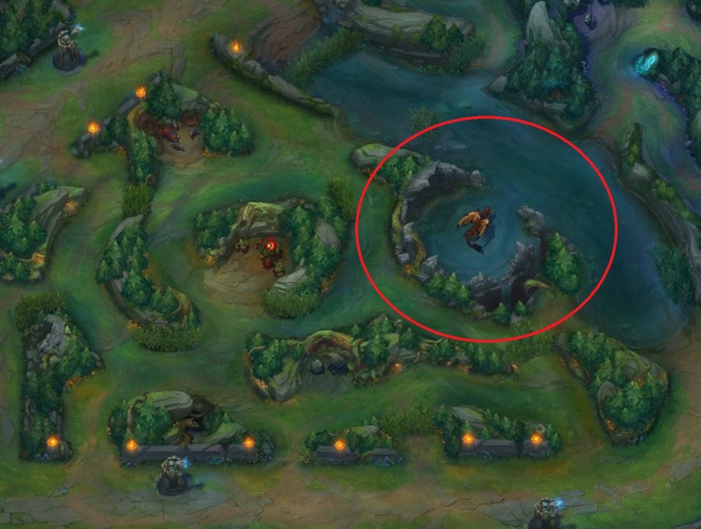 The water running through the middle of the jungle, perpendicular to mid-lane, is called the river. It’s the mid-point of the map, and players on the opponent’s side of the river need to beware.