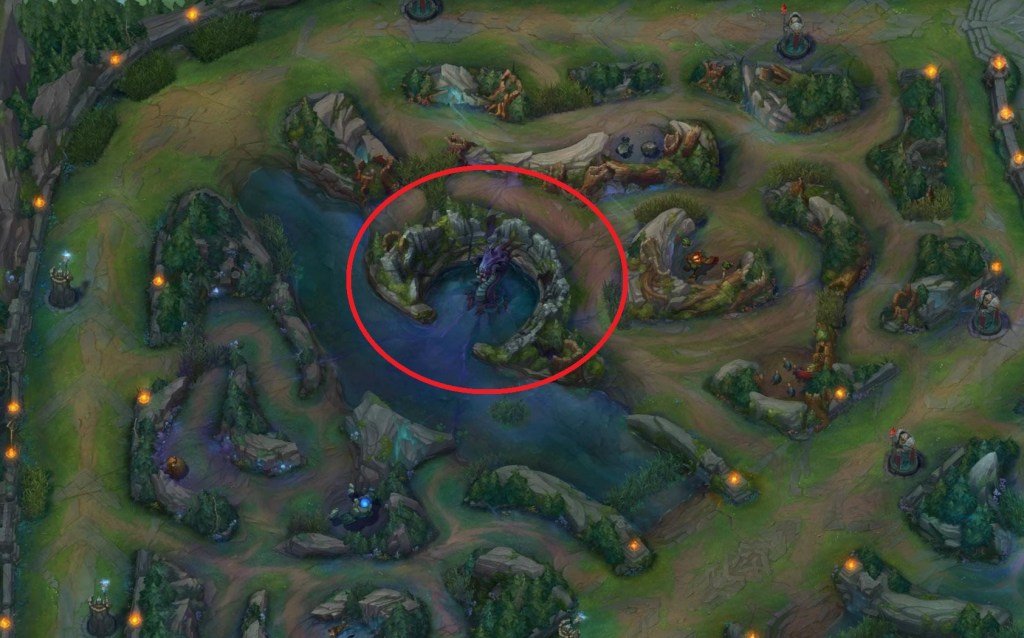 - Elder dragon – after the teams get a soul dragon (which usually happens at the 25-minute mark, give or take a couple minutes), the Elder dragon spawns in the dragon pit. It’s usually after the 30-minute mark, but it provides a big damage buff to all living members. It can help end the game quickly.