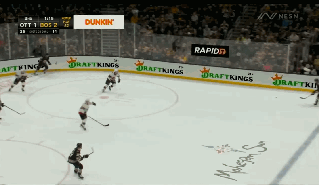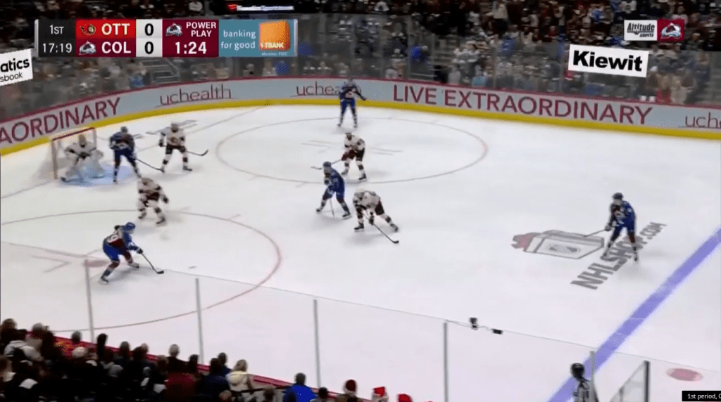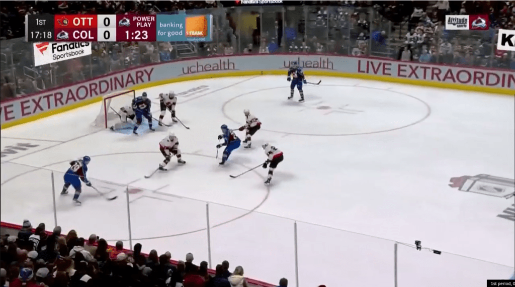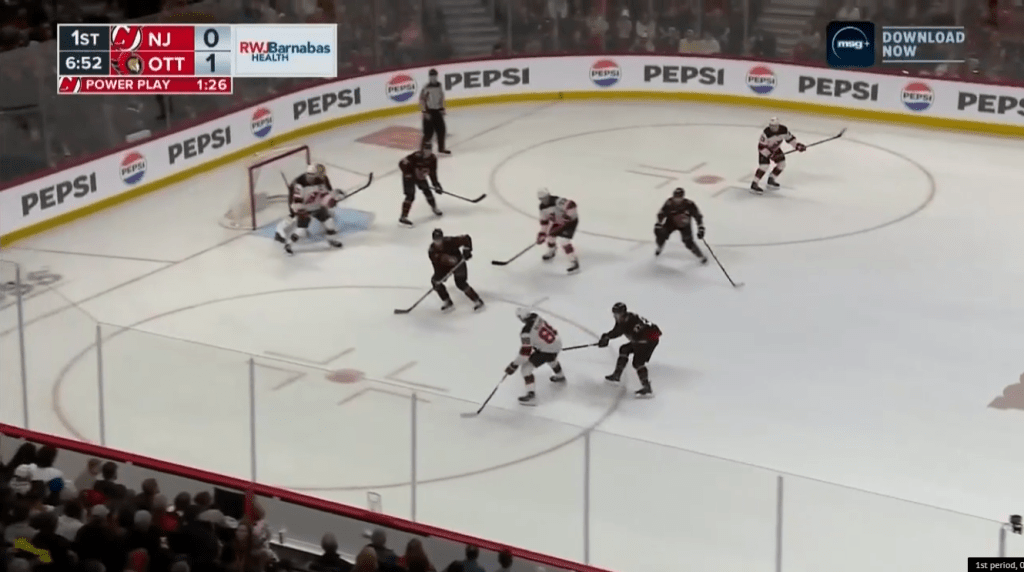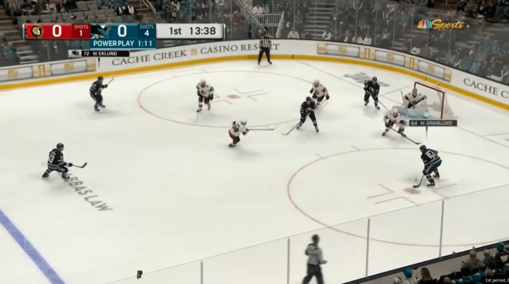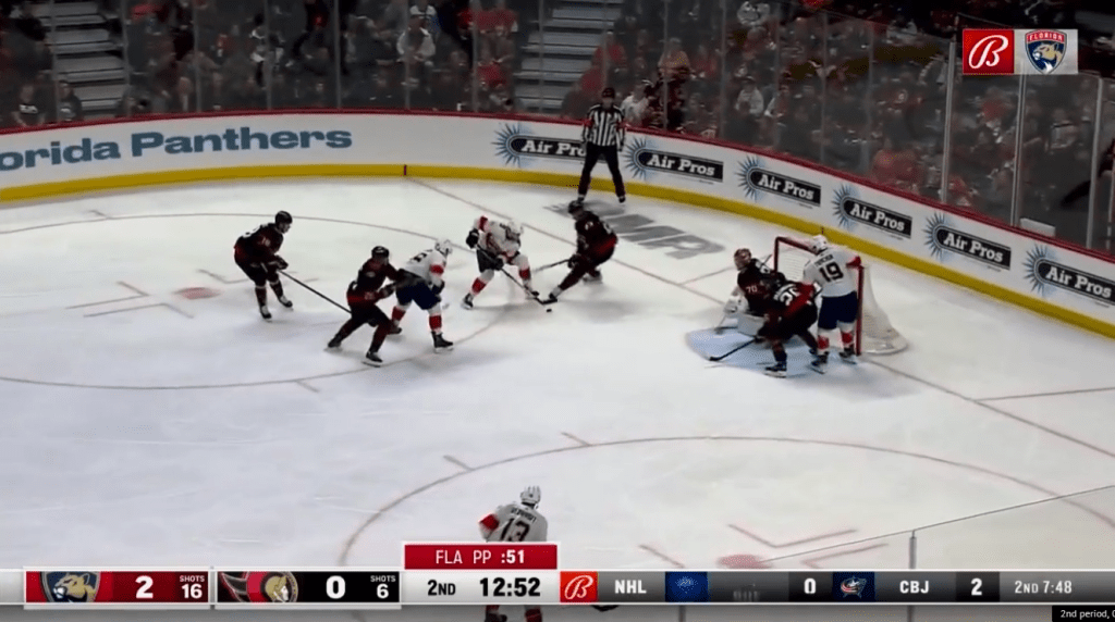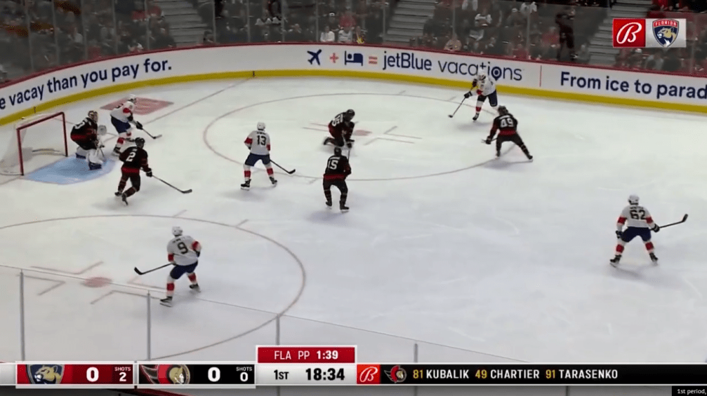 That leaves an 18-wheeler-sized hole in Ottawa’s PK structure, and guess where the puck goes next thanks to a one-touch pass: