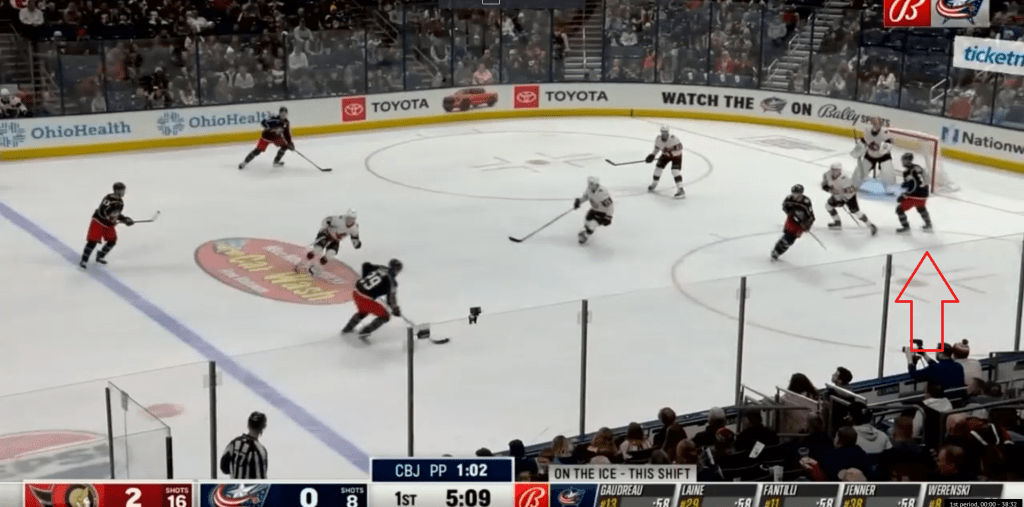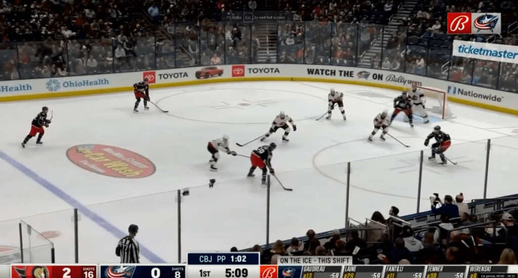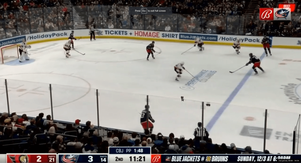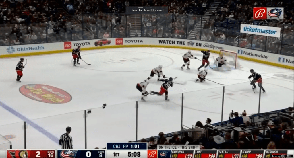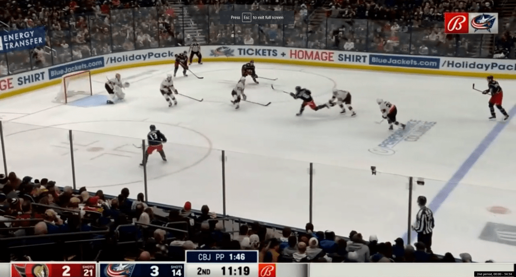 About 12 seconds later, a point shot from Werenski results in a deflected goal from Jenner, who was basically responsible for both of Columbus’s PP goals.
